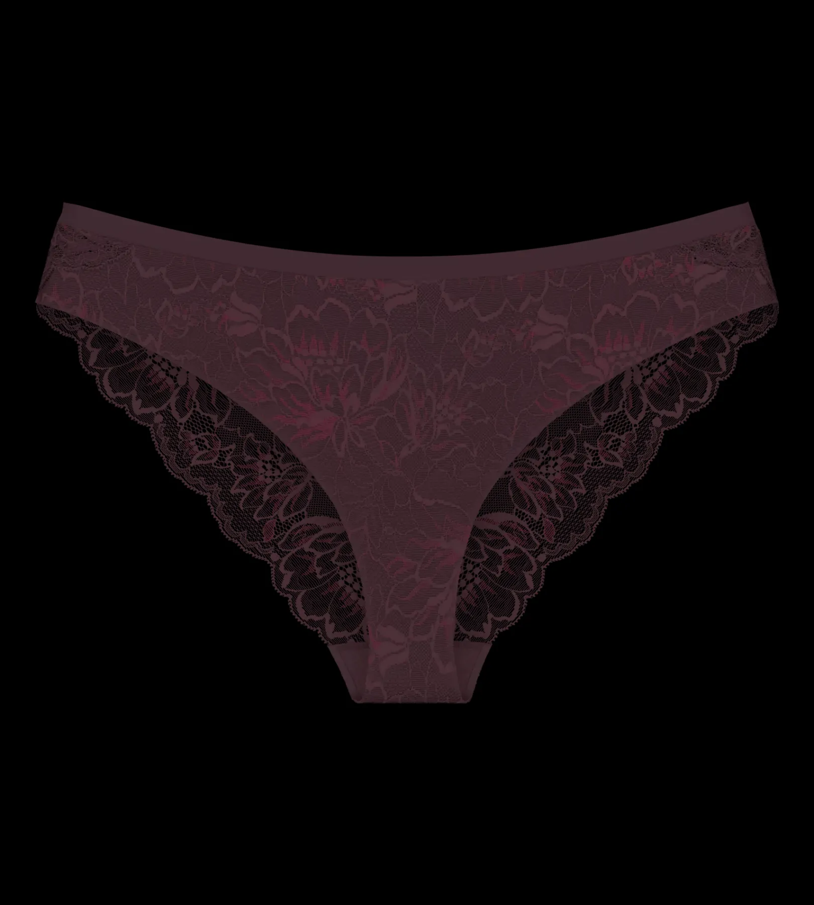 Majtki ozdobione koronką na całej powierzchni mają uwodzicielski wygląd, ale pozostają niewidoczne pod ubraniem. Wykonane z ekologicznej koronki.