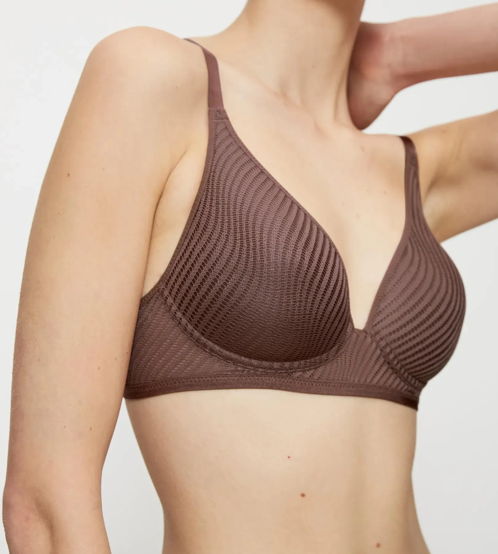 - Miękka i gładka gumka na wewnętrznej krawędzi miseczek, pod pachami i pod biustem