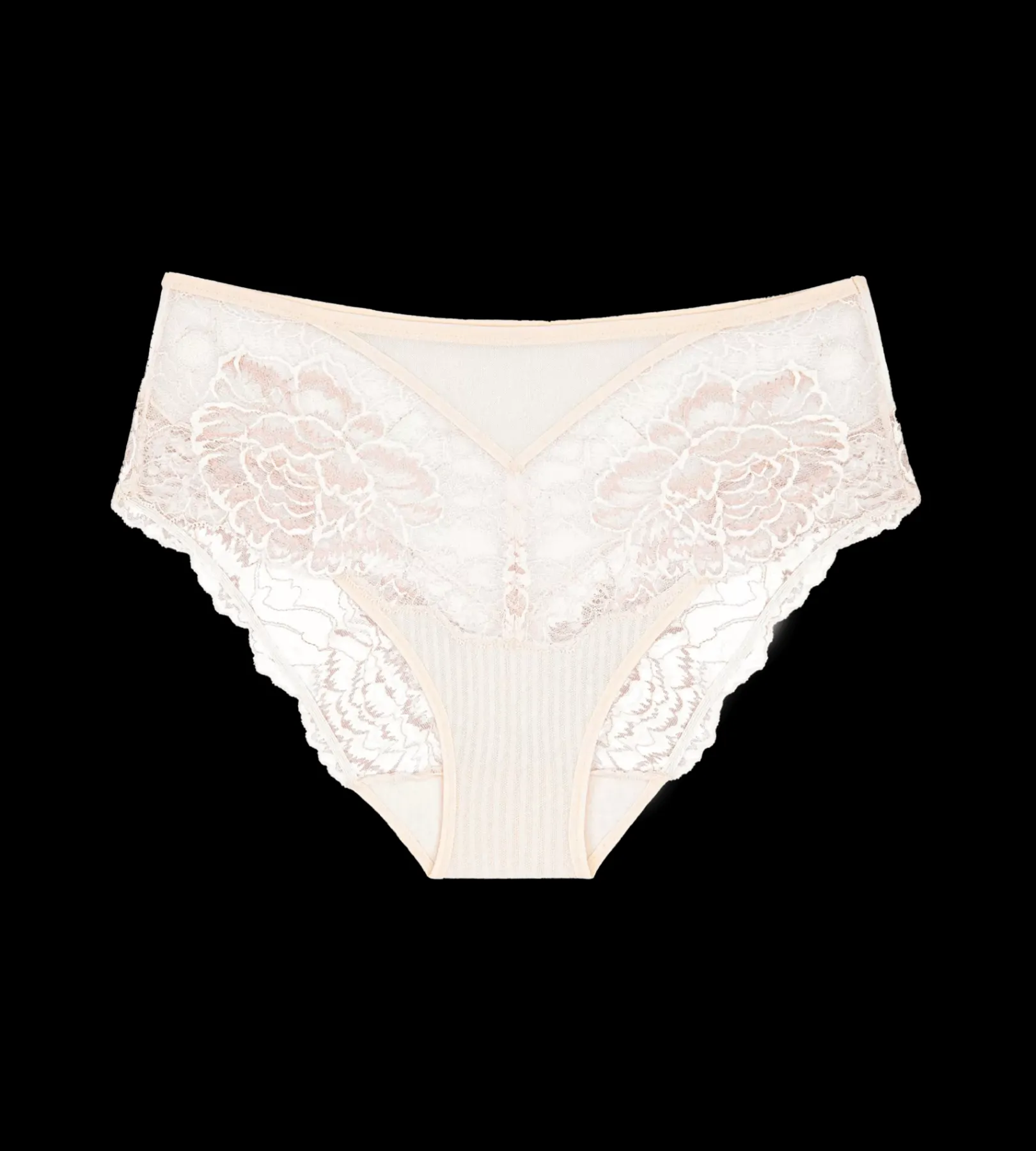 - Tył z lekko modelującego, elastycznego tiulu z szerokim koronkowym wykończeniem na wycięciach na nogi