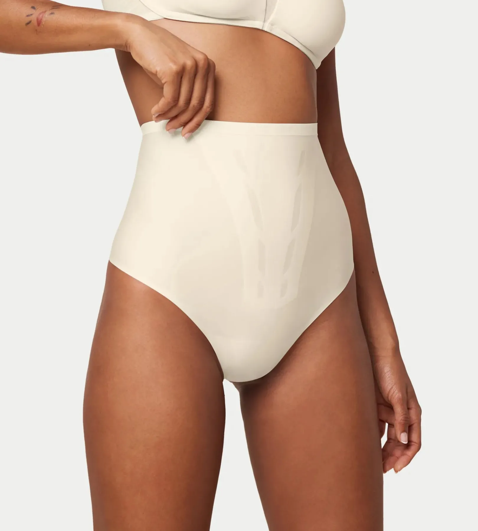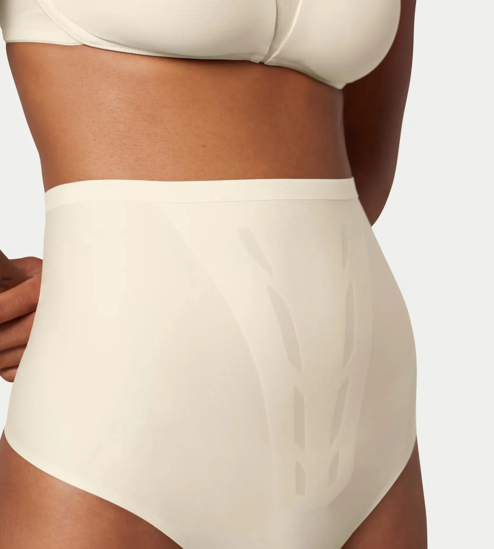 Lekkie, modelujące stringi z wysokim stanem z serii Triumph Shape Smart z modnymi obszarami specjalnymi zapewniającymi efekt wyszczuplenia. Z wewnętrznymi bezszwowymi obszarami zgrzewanymi na gorąco i drugą warstwą siateczki wyszczuplającą sylwetkę. Wykonane z lekkich, oddychających i rozciągliwych materiałów, które zapewniają najwyższy komfort i kontrolę nad obszarem brzucha. Nie odznaczają się pod ubraniem dzięki gładkiemu i płaskiemu wykonaniu przy wycięciach na nogi i w talii. Wysoka zawartość elastanu zapewnia mocniejszy i bardziej wytrzymały produkt modelujący. Nowy poziom wygodnej i praktycznej bielizny modelującej na co dzień.