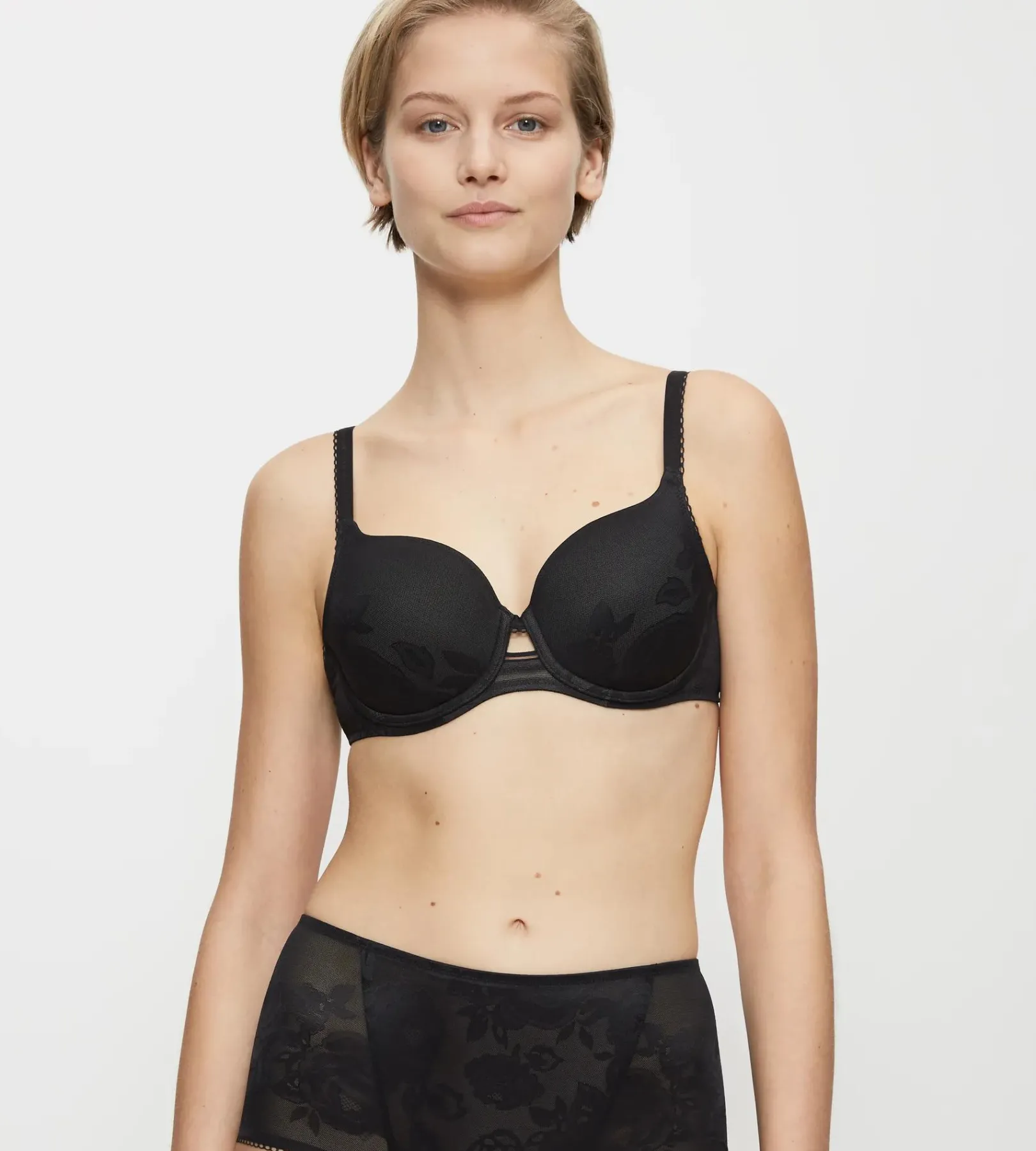 Biustonosz z serii bielizny Shape Wild Rose Sensation od Triumph dzięki lekkim miseczkom Spacer Cup i koronce o średnich właściwościach modelujących oczarowuje nieskazitelną sylwetką i tworzy naturalnie piękny dekolt.
